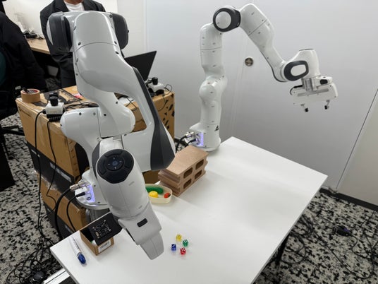 今回の取り組みでは、Franka Robotics GmbH社の高精度かつ操作性に優れた協働ロボット「Franka Emika Research※」を活用し、双腕による協調タスク(物体把持、組立、操作など)の自律動作デモの構築を目指します。 展示では、AIによる環境認識と自動動作生成を組み合わせた、"人のように考えて動く"ロボットの未来像を提示する予定です。