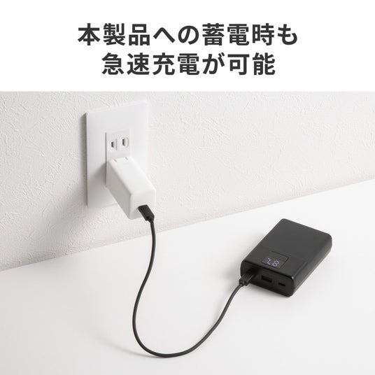 USB Power Delivery(USB PD)規格による最大20Wの出力に対応し、対応スマートフォンやタブレットなどへ急速充電ができます。急速充電時をお知らせする表示機能も備えています。