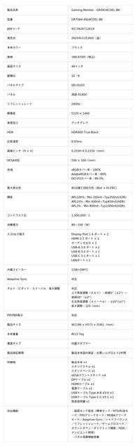 Gaming Monitor - GR4924COEL-BK 189,970円(税込)