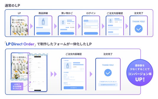 「LP Direct Order」により、EC事業者は従来の情報提供型LPから、入力のしやすさと1ページ完結の導線を活用して、ユーザーの行動を促すLPへと進化させ、コンバージョン率の向上が期待できます。