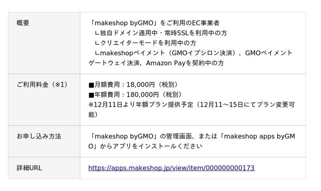 (※1)別途、「makeshop byGMO」のご利用料金がかかります