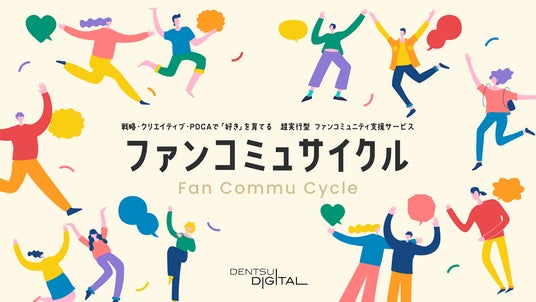 株式会社電通デジタル(本社:東京都港区 代表取締役社長執行役員:瀧本 恒 以下、電通デジタル)は、ファンコミュニティにおける戦略設計から運用、事業伴走までを一気通貫で支援する超実行型 ファンコミュニティ支援サービス「ファンコミュサイクル」を本日より提供開始します。