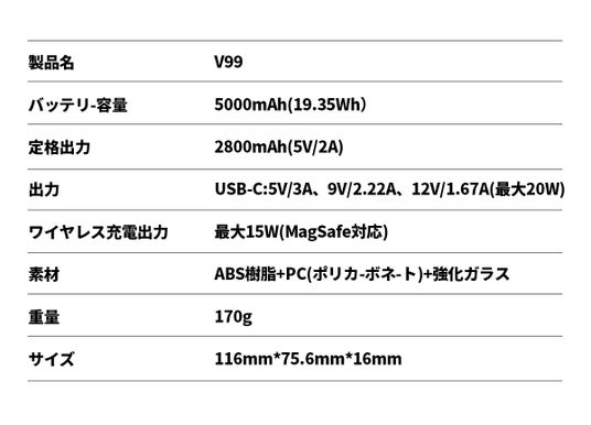 内部には複数の保護システムを搭載しており、過充電保護・温度保護・過放電保護・短絡(ショート)保護・異物検知機能を備えています。