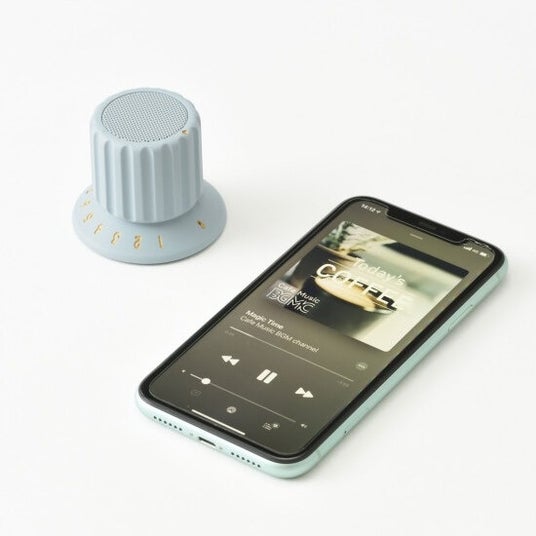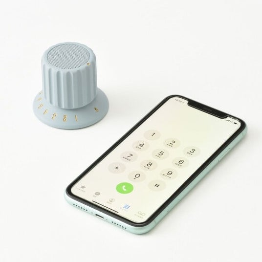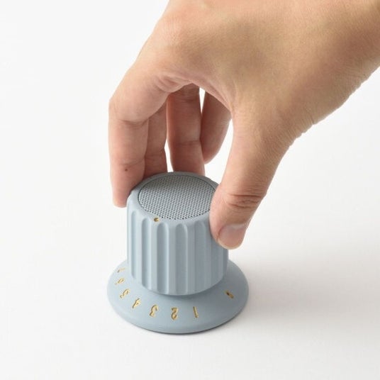 ボリュームノブをモチーフにした、手のひらサイズのレトロなフォルムが印象的なスピーカー。
