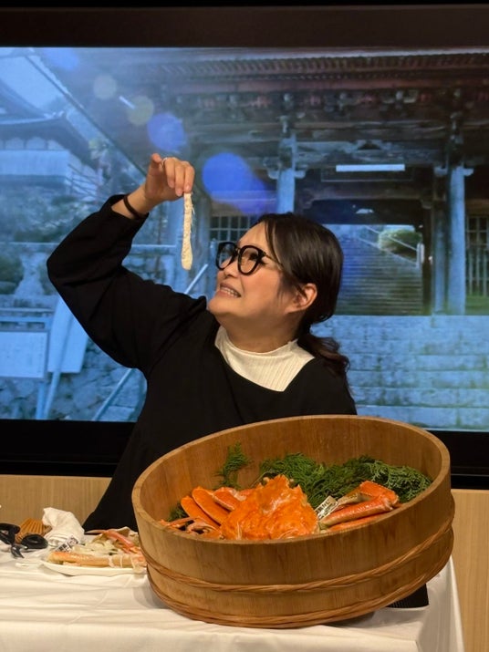 そして、“大食い女王”として知られるギャル曽根さんに、本市の冬の味覚の王者である「舞鶴かに(R)」を贈呈。見事な食べっぷりを披露いただき、「旨味が凝縮されていて、びっくりするくらい濃厚!舞鶴かに最高!」との感想を頂戴しました。