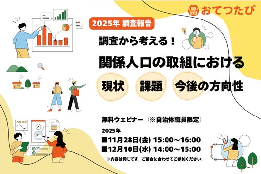 季節的・短期的な人手不足をキッカケに、地域の関係人口を創出する人材マッチングサイト『おてつたび』を運営する株式会社おてつたび(本社:東京都品川区、代表取締役CEO:永岡里菜、以下「おてつたび」)は、全国の自治体(関係人口を所管する部署)を対象に実施した『関係人口に関する取組アンケート』の結果を報告するオンラインウェビナーを、2025年11月28日(金)および12月10日(水)に開催いたします。