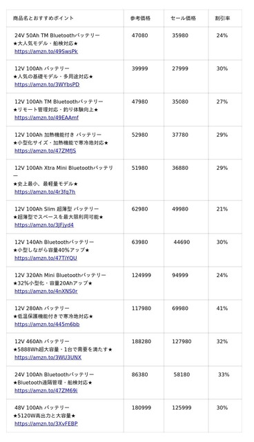 ●バッテリーと充電器、インバーターなどの関連製品をまとめ買いでさらに5~10%割引