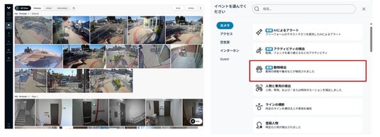 ※Verkada command(AIカメラ監視画面)例 ※設定画面よりAI動物検出機能が選択可能です