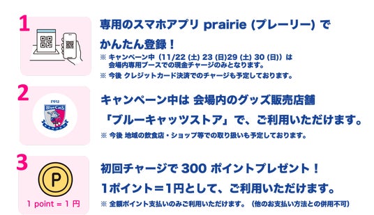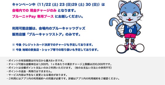※キャンペーン中は、ホームゲーム会場内専用ブースでの現金チャージ、グッズ販売店舗のみの取り扱いとなります。