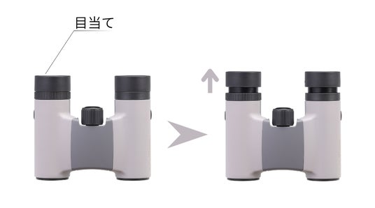 目当てを手でひねると高さを調整できます。裸眼による観察でも、メガネ装着時でも、最適なアイポイントでのぞくことができます。