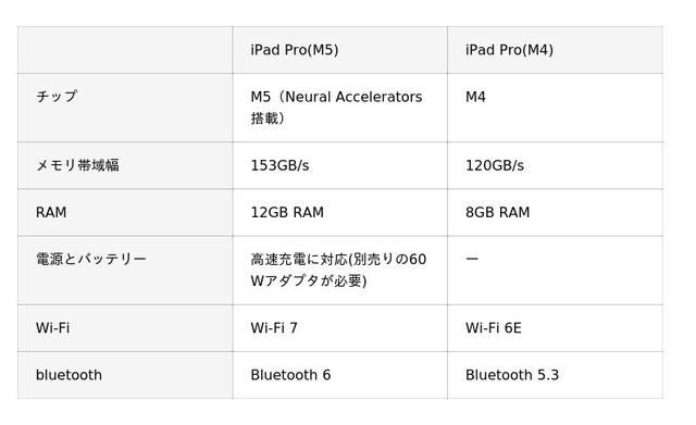 iPadの最上位モデルとなるProシリーズは、最も高い処理能力と高品質ディスプレイを搭載したクリエイター向けのiPadです。M5チップとなったiPad Proは、処理能力が更にパワーアップ。また、M4チップには搭載されていない「Neural Accelerators」がGPUに組み込まれました。