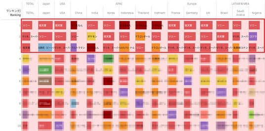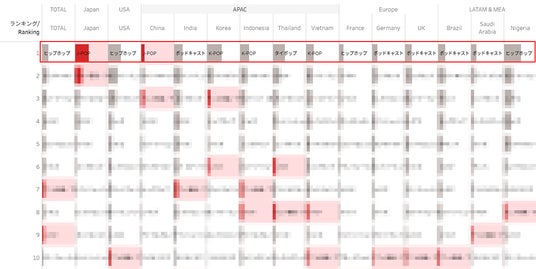 特徴3.:国内外のメディア、ジャンル、エンタメブランドの人気を14カ国で比較