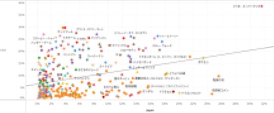 特徴4.:人気エンタメブランドの日本と海外の差異をマッピング