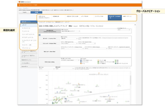 特徴5.:特定のメディア、ジャンル、エンタメブランドを選んで国別に比較分析