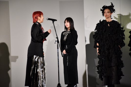 「グランプリを獲得できて本当に嬉しいです。着るだけでワクワクするような、テンションが上がるようなものを作りたいという思いで制作しました。今回初めて産地訪問をして、服や生地が機械だけでなく、これほど人の手がかかっていることに驚きました。尾州の方々の温かさや生地への愛情が伝わってきて、リサイクルウールという歴史ある技法を多くの人に広めたいと思いました。制作ではパターンとシルエットに特にこだわり、数センチ単位で調整を重ね、リハーサルでの問題点を当日朝まで修正しました。2月の名古屋TGCでステージに出展できることを光栄に思います。」