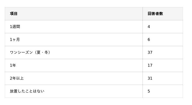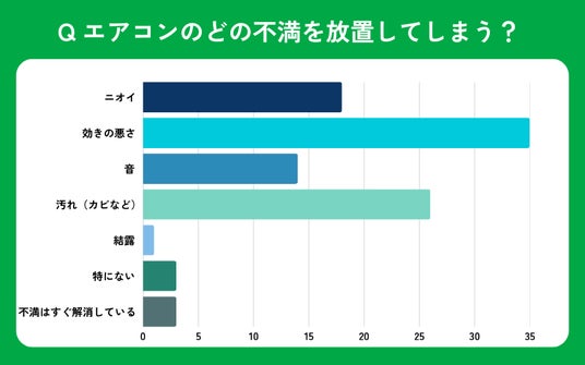 ・放置してしまうエアコンの不満は「効きの悪さ」「汚れ(カビなど)」で、ワンシーズン(夏・冬)~2年以上放置してしまう人が多い。