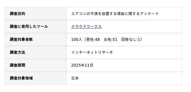 エアコンの不満を放置する理由に関するアンケート調査の概要