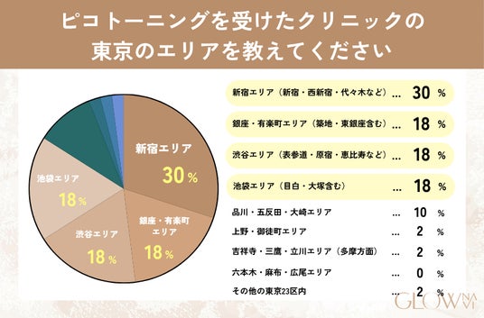 - 施術を受けたエリア(東京都内)では「新宿エリア」が最多で、全体の3割を占めた