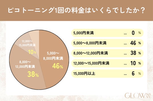 - 1回の施術料金は「5,000~8,000円未満」と答えた人が最も多く、全体の46%