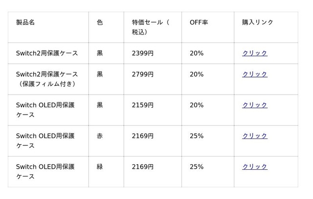 また、Nintendo Switch2用保護ケースは、期間限定で24%オフとなる税込2,249円でご提供します。