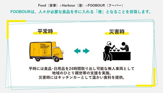 「FOOBOUR」は、Food(食)とHarbour(港)を組み合わせた名称で、「誰でも立ち寄れる“食の港”」として、平常時・災害時を問わず地域の支援に活用されることを目的としています。