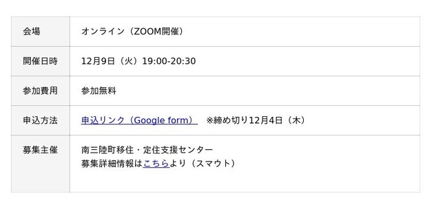 2025年12月9日(火)よりオンラインにて「南三陸町 地域おこし協力隊募集セミナー まなびがめぐるまち─南三陸でひらく"学び"の可能性─」の開催が決定しました。