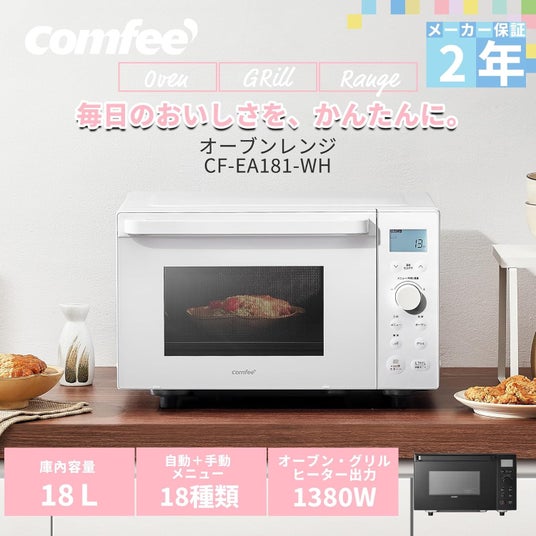 コンフィー(COMFEE') オーブンレンジ 18L フラットテーブル 縦開き 自動メニュー18種類 CF-EA181-WH ホワイト 一人暮らし 二人暮らし 家族用