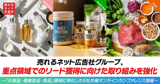 売れるネット広告社グループ株式会社(本社:福岡県福岡市、代表取締役社長CEO:加藤公一レオ、東証グロース市場:証券コード9235、以下 売れるネット広告社グループ)の連結子会社である売れるネット広告社株式会社は、2025年12月4日(木)に、化粧品・健康食品・食品の3領域に特化したオンラインカンファレンスを6社共催で開催することをお知らせいたします。