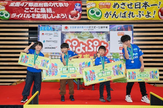 株式会社セガは、ジャパン・eスポーツ・プロライセンス認定タイトルである、対戦アクションパズルゲーム「ぷよぷよ」シリーズについて、2025年11月22日(土)、23日(日)に滋賀県で開催された「わたSHIGA輝く国スポ・障スポ 2025」文化プログラム「全国都道府県対抗eスポーツ選手権 2025 SHIGA ぷよぷよ部門」の滋賀本大会(決勝大会)にて、「小学生の部」で滋賀県代表のよし選手、「オープン参加の部」で東京都代表のゆうき選手が優勝したことをお知らせいたします。