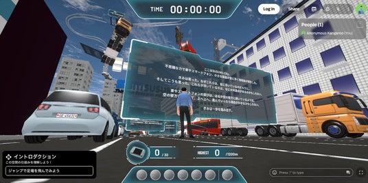 『SUSUMU JUMPERS』は、メタバースプラットフォーム「Spatial」上で開発された、ブラウザから手軽にプレイできるメタバースゲームです。舞台となるのは、電子部品や機器が宙に浮かぶ謎の都市「SUSUMU City」。プレイヤーはその現象の真相を探るべく、ジャンプを繰り返しながら上空を目指して進んでいきます。