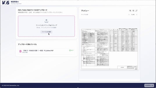 「検図照査AI」は、2DやBIMの図面をアップロードするだけで、AIが事前に設定された照査項目に基づいて自動的に図面をチェックし、適合・不適合を判定するカスタマズ型AI SaaSです。