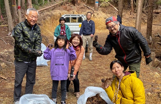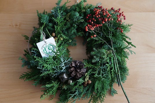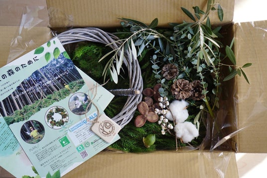 森林整備によって発生したスギやヒノキの枝葉を、クリスマスリースの材料として活用し、全国の支援者へ届ける取り組みです。返礼品には、枝葉・木の実・リース土台・ワイヤーなど、自宅でリース作りができるキットや、完成品のリース、花屋さん向けに5個・10個分の材料をまとめて発送するセットなどを用意しています。本プロジェクトは、森林整備や植林に取り組む木こりの活動を支援することを目的に、2021年より毎年秋に実施。背景にあるのは、国内の森林が抱える課題「森の少子高齢化」です。日本は国土の約7割が森林ですが、木材の輸入依存による国産材需要の低下と林業従事者の減少によって、森林の手入れが追いつかず、高齢な木が増え、新しい苗が植えられない状況が続いています。森林は、私たちの生活に欠かせない水源の保全、災害の抑制、生物多様性の維持など、多くの役割を担っています。しかし普段生活するなかで、その重要性を実感する機会は多くありません。そのため、クリスマスリース作りをきっかけに、森の現状を知り、自然保護への関心と参加の輪を広げることを目指しています。