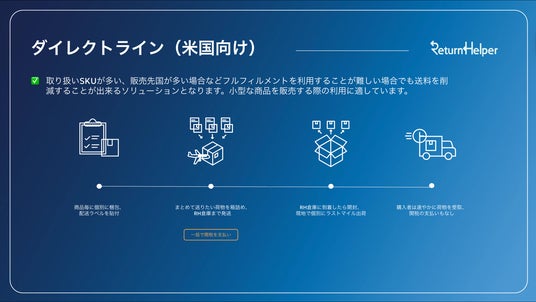 越境EC向けの物流サービスを提供するReturn Helper株式会社(本社:東京都新宿区、代表取締役:柴田 駿平、以下リターンヘルパー)は、国際物流サービス「FlexForward」の新機能として、ダイレクトラインをリリースいたします。