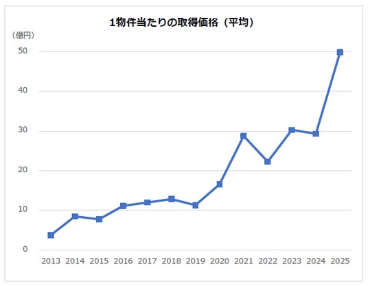 物件取得にあたっては、自己資本に加えて金融機関からの借入を活用しており、会社の成長とともに1物件当たりの取得規模も大きくなっています。