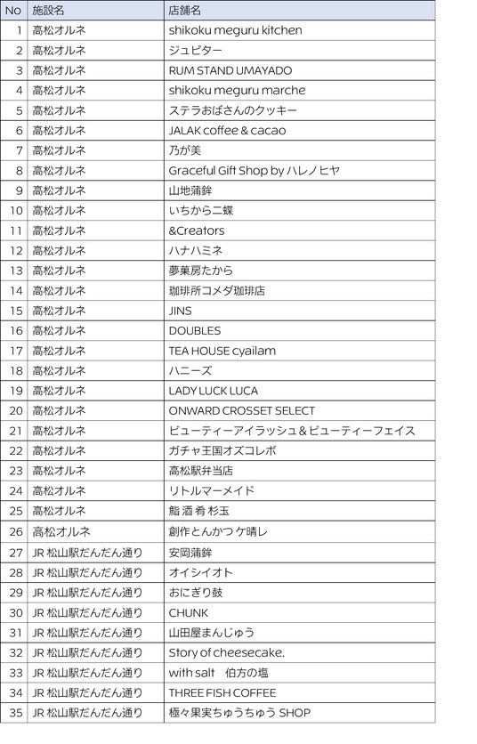 高松オルネ・・・26店舗