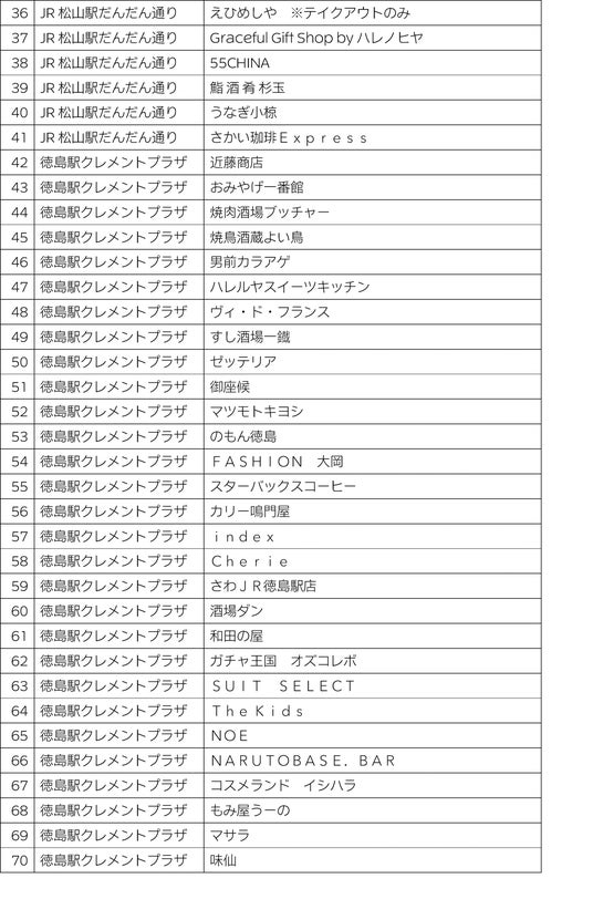 徳島駅クレメントプラザ・・・29店舗