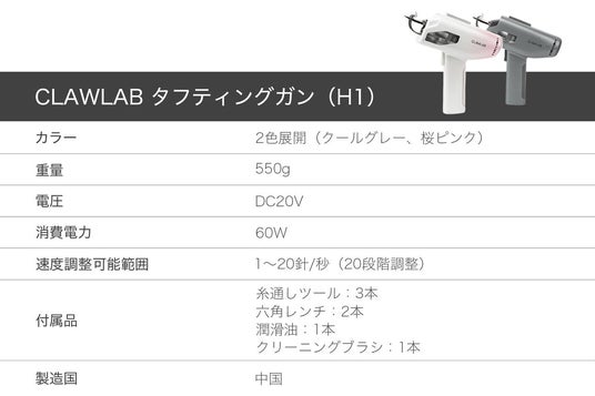 タフティングキットを手がける CLAWLAB Japan(本社:香港) は、海外で累計6,200万円以上の売上を記録した人気タフティングキットを進化させた新モデル「Clawlab H1 Lite(クローラボ エイチワン ライト)」 を、2025年11月26日(水)よりMakuakeにて先行予約販売を開始いたします。