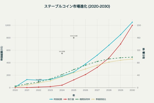 本白書は、規制環境の整備(米国GENIUS Act・STABLE Act、欧州MiCA等)、CBDC(中央銀行デジタル通貨)との競合・協調関係、DeFiエコシステムとの融合、RWA(現実資産)トークン化といった多層的テーマを包括的に分析する。