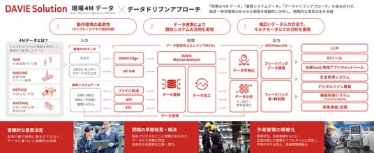 DAVIEエンジンを基盤とするソリューション群です。- DAVIE Solution:大規模なデータ連携と全体最適化を目指し、基幹システムなど広範なシステムとのデータ連携を行うソリューションです。