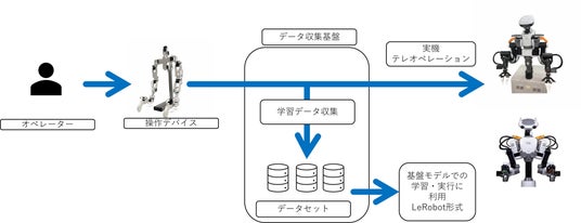 本取り組みにおいて、カワダロボティクスはヒューマノイドロボットの操作・学習のためのデバイス開発・環境整備を担い、東京大学松尾・岩澤研究室が研究しているロボット基盤モデルのタスクデータ収集基盤技術と組み合わせることで、研究者や企業が広くヒト型ロボットのロボット基盤モデル研究に取り組める環境を構築します。