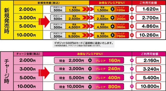・チャージ金額の8%分がプレミアとして付与されるため、現金よりお得にご利用いただけます。