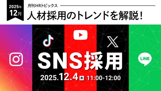タイトル:人材採用のトレンドを解説!月刊HRトピックス2025年12月「SNS採用」開催日時:2025年12月4日(木) 11:00 ~ 12:00 *10分前から入室可能