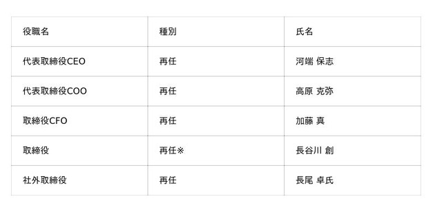 この度の取締役体制は、継続性と実行力の双方を重視したものであり、特に長谷川が社外取締役から取締役としてコミットする体制により、グループ全体を横断した事業推進力は一層高まると考えています。