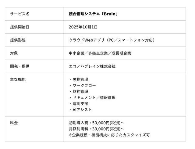 統合管理システム「Brain(ブレイン)」を2025年10月1日より正式に提供開始しました 。