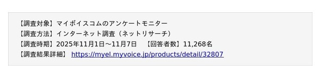 マイボイスコム株式会社(東京都千代田区、代表取締役社長:高井和久)は、3回目となる『マスク』に関するインターネット調査を2025年11月1日~7日に実施しました。