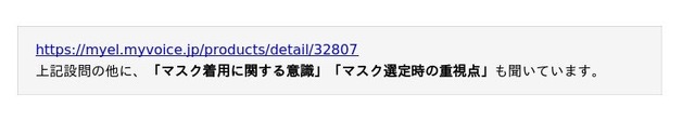 本調査は、外出時や自宅でのマスク使用についてです。病院や業務上での使用は除きます。調査結果をお知らせいたします。