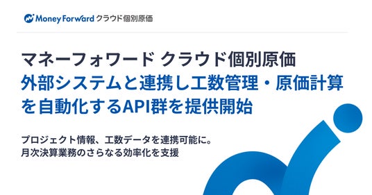 株式会社マネーフォワードは、『マネーフォワード クラウド個別原価』において、外部システムと連携し工数管理・原価計算を自動化するAPI群の提供を開始します。これにより、外部システムで管理されているプロジェクト情報や工数データをタイムリーに連携できるようになります。スムーズな原価計算を実現し、企業の月次決算業務のさらなる効率化を支援します。