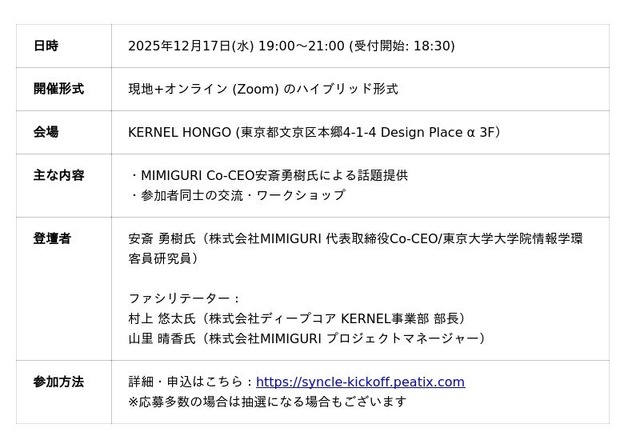 詳細・申込はこちら:https://syncle-kickoff.peatix.com