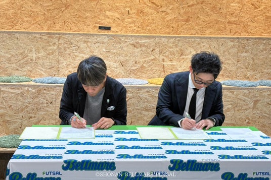 ※(左) 株式会社湘南ベルマーレフットサルクラブ 代表取締役社長 佐藤 伸也