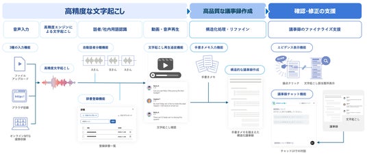- 論点の構造化能力の向上: AIモデルの性能向上とその性能を引き出すロジックを搭載したことで、会議の内容をより論理的に整理し、議論の流れを明確に把握できる構造化された議事録をリアルタイムで生成します。